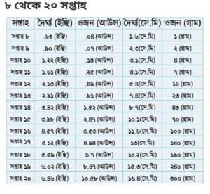 ৬ষ্ঠ মাস | ৩০-৩২ সেমি | ৬০০-৭০০ গ্রাম |